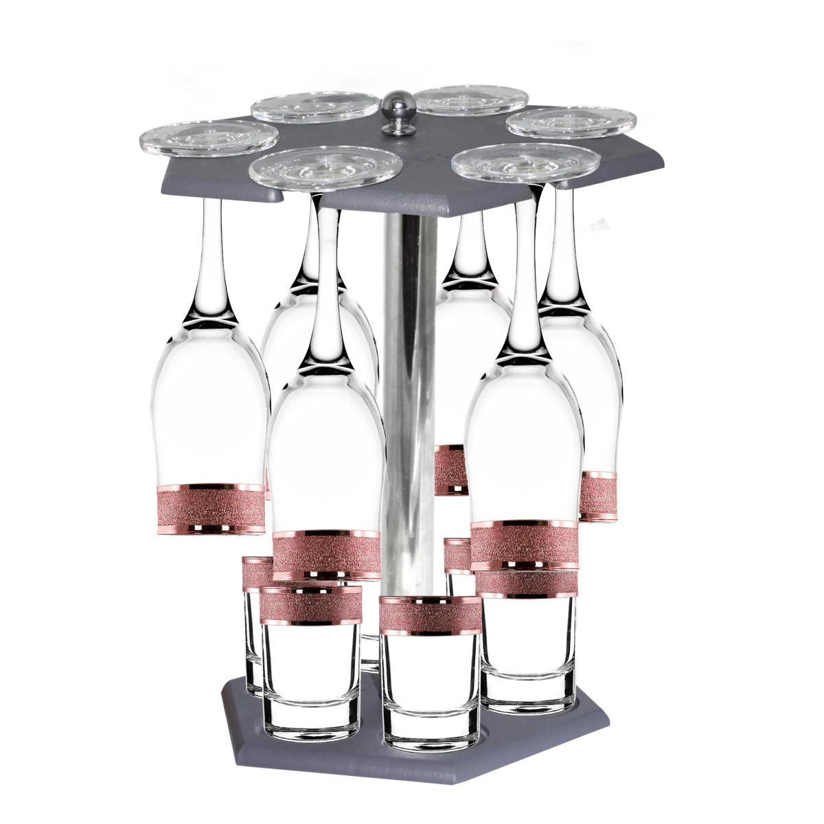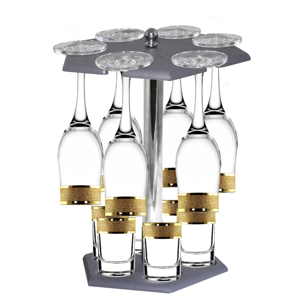 Набор с барной стойкой 12 предметов с узором "Золотой карат" цвет "Рубин" (KRV23-160/837/S/BS/12)