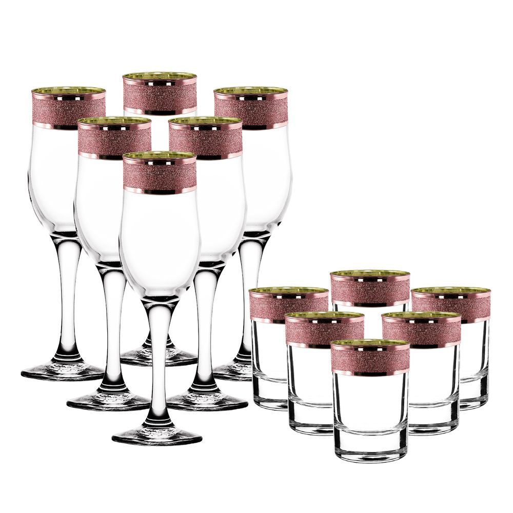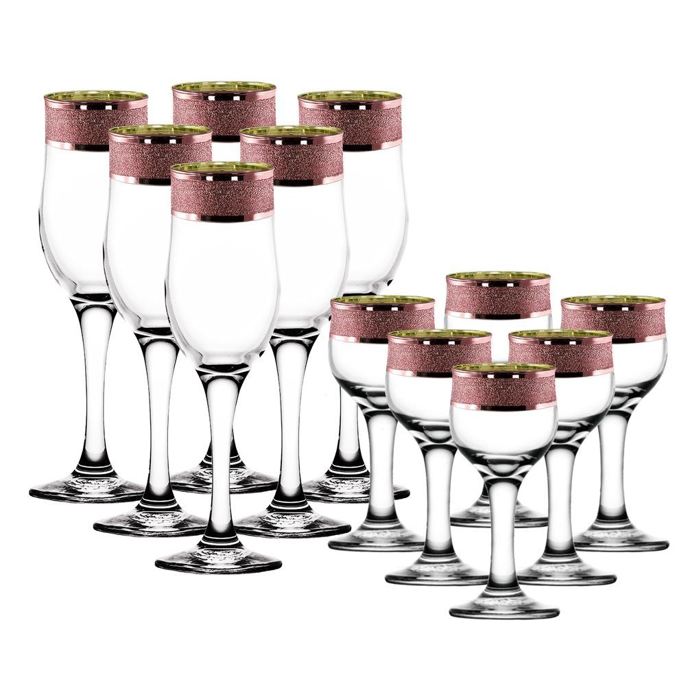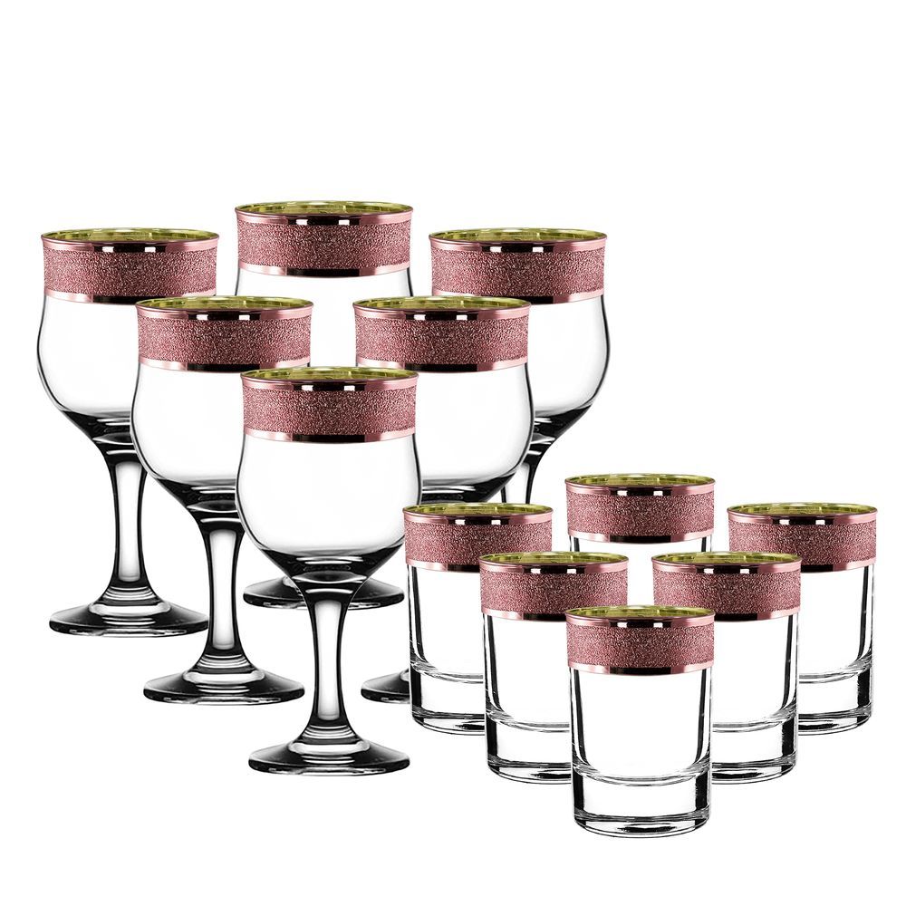 Набор 12 предметов с узором "Золотой карат" цвет "Рубин" (KRV23-163/164/S/J/12)