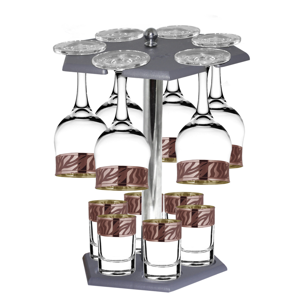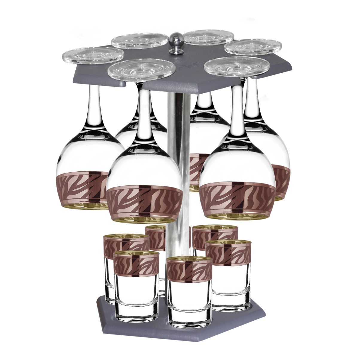 Набор с барной стойкой 12 предметов с узором "Сафари" цвет "Рубин" (ERV318-411/837/S/BS/12)