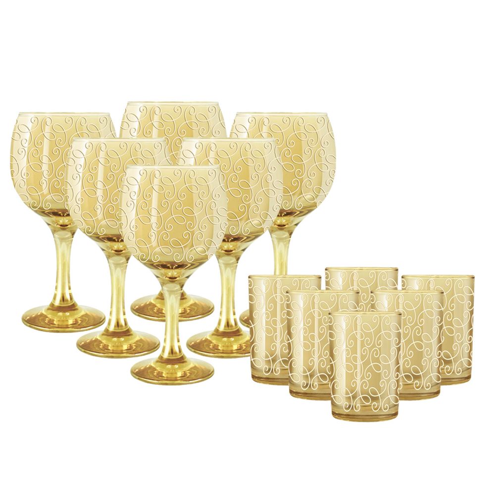 Набор 12 предметов с узором "Ажур" цвет "Янтарь" (EC168-411/837/S/J/12)