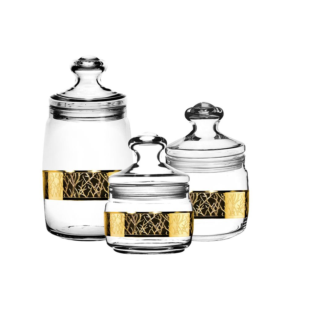 Банки Чешни 3 шт с узором "Золотая ветвь" (TAV326-424/425/554/S/J/3)