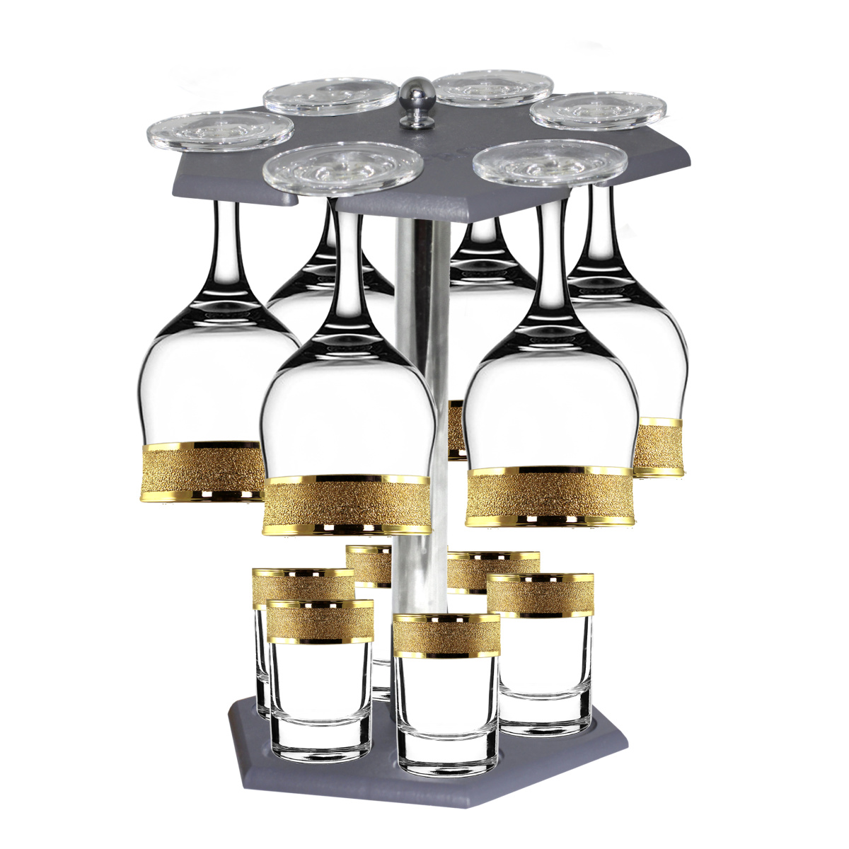 Набор с барной стойкой 12 предметов с узором "Золотой карат" цвет "Рубин" (KRV23-160/837/S/BS/12)
